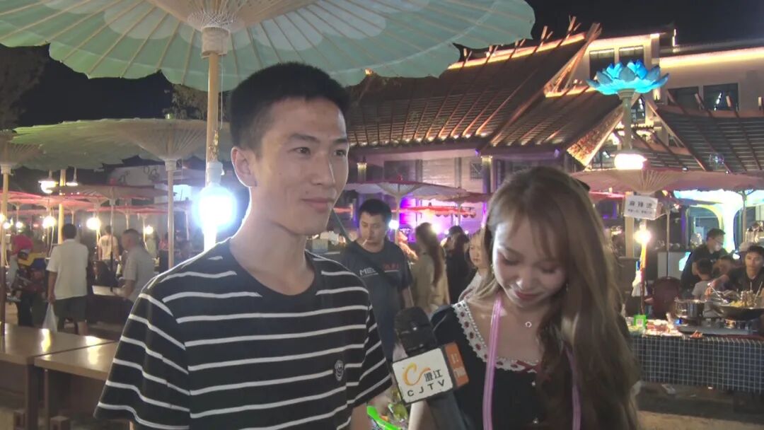 这里夜市比较热闹,游客比较多,我们经常来这里跳舞,游玩 ,朋友一起约着来玩。(抚仙湖星光夜市)办得越来越好了,食品也多,小物品也多,样样都好。我希望我们澄江越来越美好,广龙小镇和澄江所有的人民都欢迎远方的客人到来。