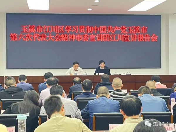10月12日,玉溪市委宣讲团到江川举行学习贯彻中国共产党玉溪市第六次代表大会精神宣讲报告会。深入学习中央、省委、市委相关会议精神,进一步引导全区干部群众把思想和行动统一到市第六次党代会精神上来,为推动江川区高质量发展、全面建设社会主义现代化奠定坚实基础。