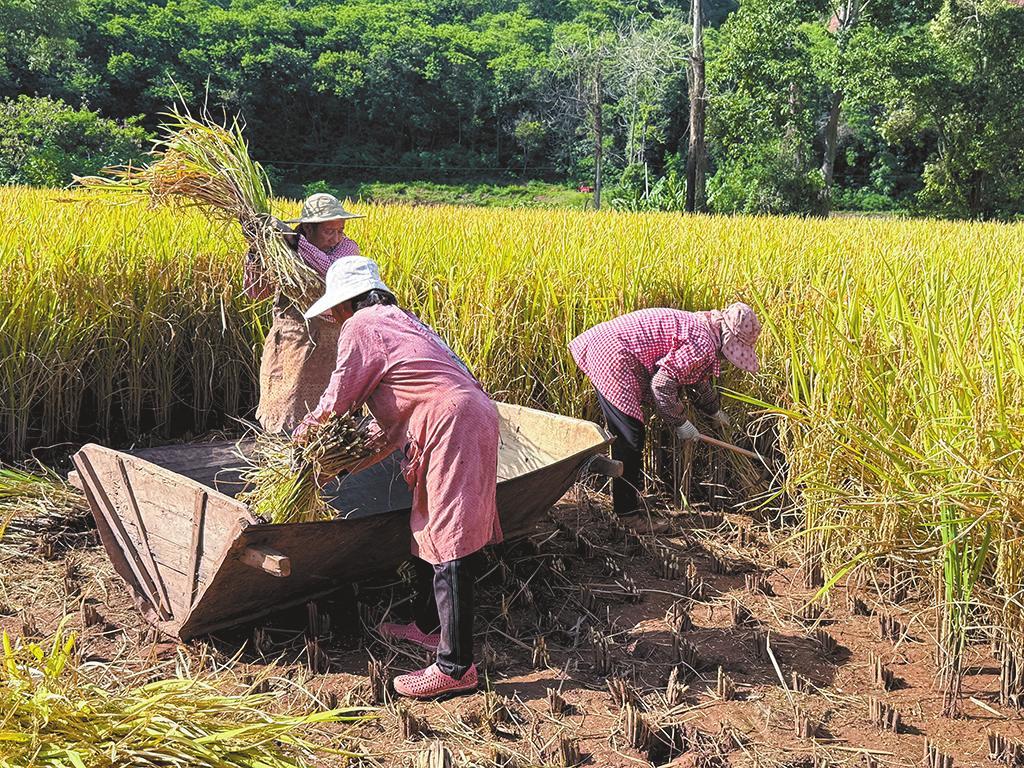 当前,易门县十街乡的3000余亩水稻陆续成熟,迎来丰收季。村民们抢抓晴好天气收割水稻,确保秋粮颗粒归仓。十街乡地处低热河谷地带,光热充足、水资源丰富、土壤肥沃,为水稻生长提供了有利条件。当地产出的稻米颗粒饱满、香气浓郁、口感软糯,深受市场青睐。近年来,十街乡积极推广优质水稻品种,依托高效田间管理技术,多措并举保障秋粮稳产增产,为实现全年粮食丰产丰收奠定坚实基础。(特约通讯员 刘大鹏 通讯员 刘珊珊 朱巧芬 摄)