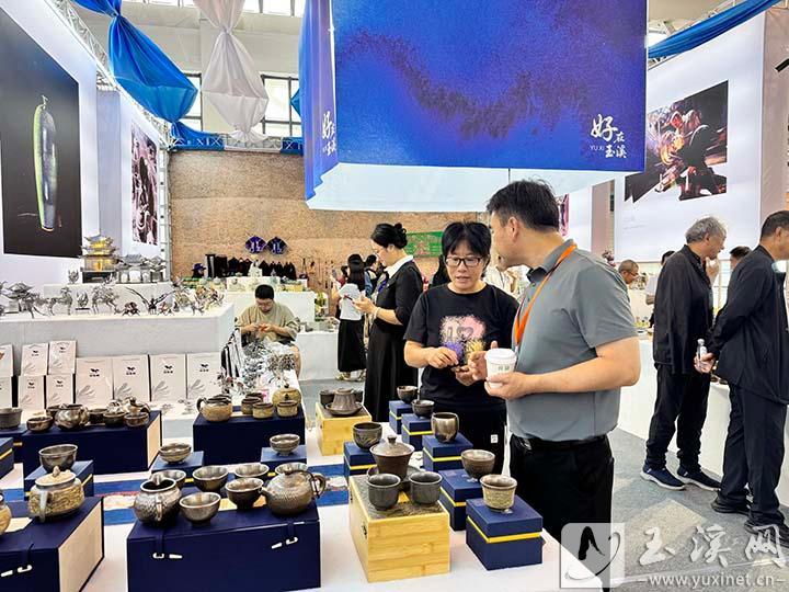 展会现场热闹非凡,位于综合馆的玉溪主题展区内,展品琳琅满目。来自我市各县(市、区)的特色非遗和文创产品在此集中亮相,涵盖陶器、铜器、刺绣等多个类别,千余件展品。其中,“玉之陶”的玉溪窑青花瓷展品、民谣陶艺馆的瓦猫文创展品、小龙茵刺绣非遗工坊的民族刺绣等以精致的工艺和独特的民族风情吸引了众多参展商驻足,他们或询问制作工艺,或拍照记录,并对玉溪文化的独特魅力表现出浓厚兴趣。