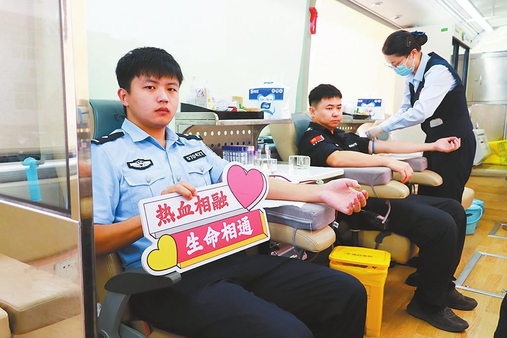 9月10日,玉溪市公安局江川分局40余名民辅警积极参加“守护生命之源 公安热血传情”无偿献血活动。大家纷纷表示,通过无偿献血,用爱心为生命“续航”,为社会贡献公安力量,是一件非常有意义的事。(通讯员 王舜 摄)