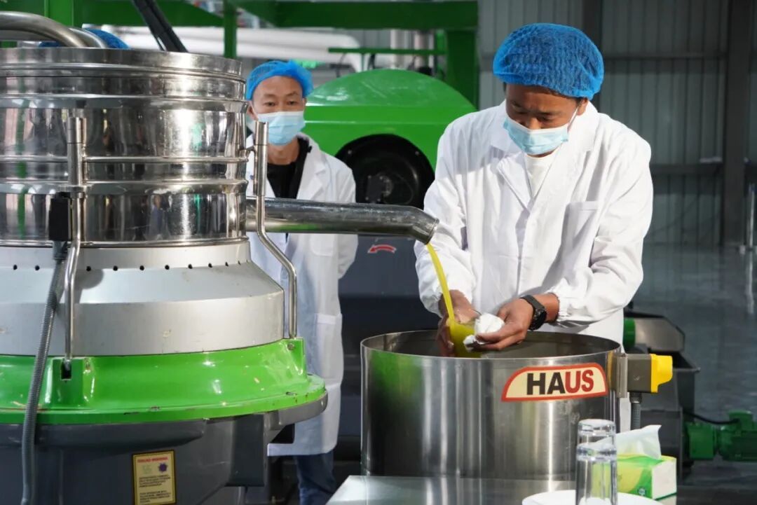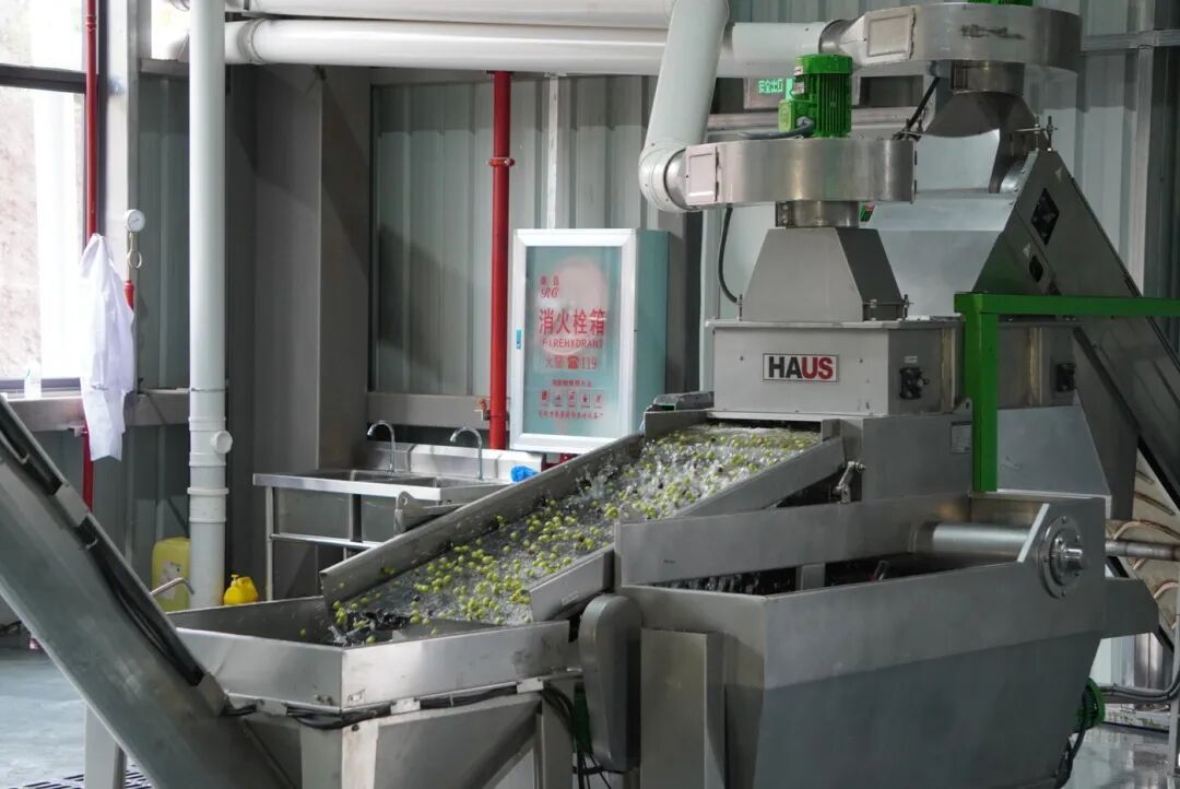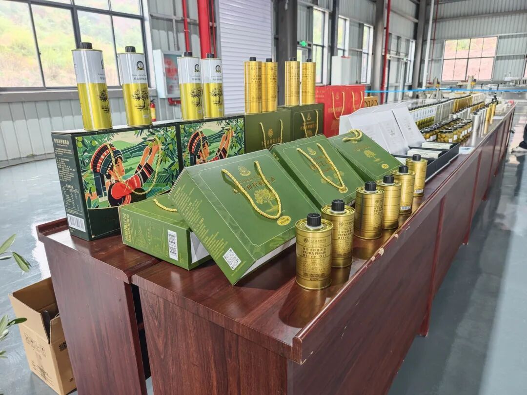 “峨山县2025年油橄榄开榨!”随着现场一声令下,一颗颗成熟的油橄榄随着传送带清洗、压榨,翠绿色的橄榄油从出油口流出,接上一小杯品尝,绵密中带着鲜果的清爽。在另一侧的产品展示区,橄榄油、橄榄皂、橄榄精油等产品种类多样,让人眼花缭乱。