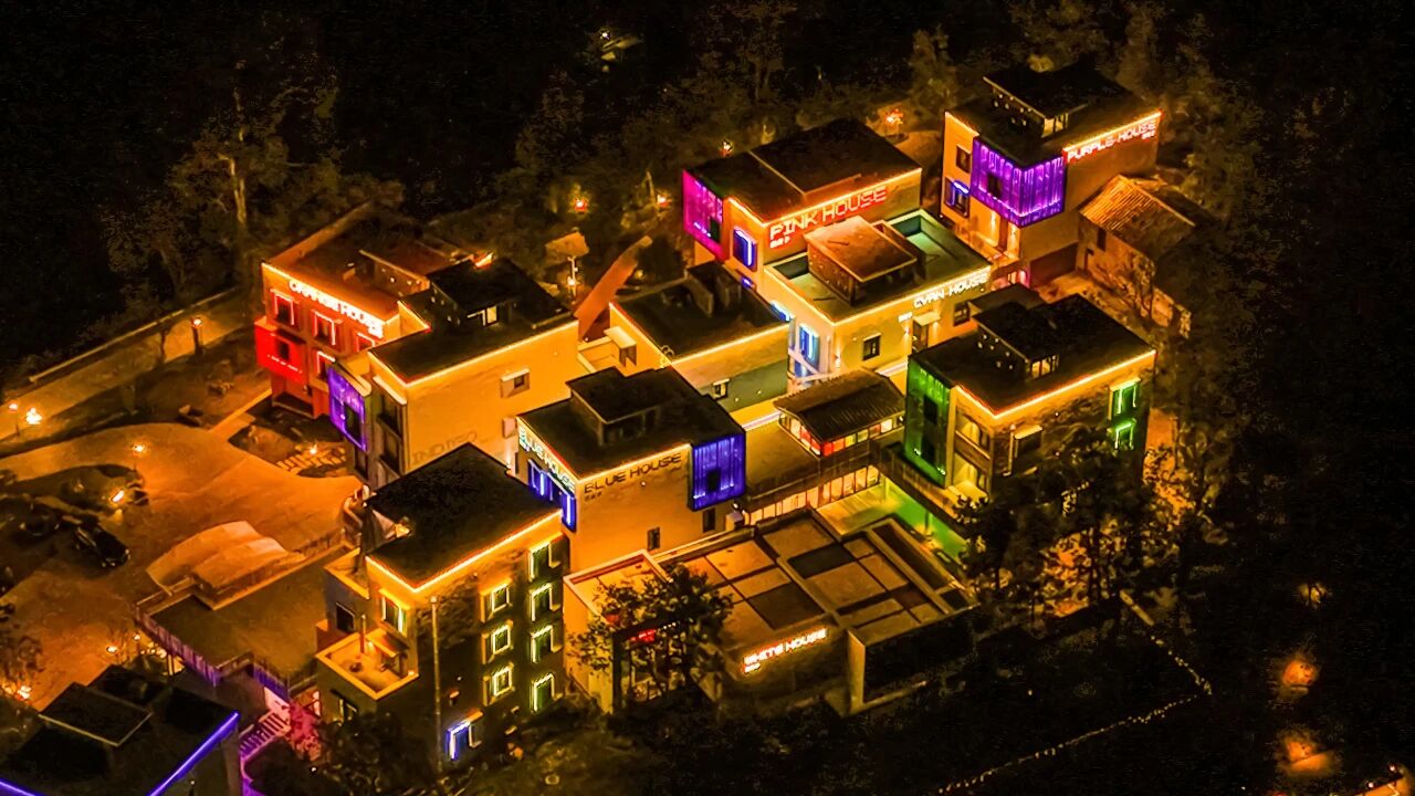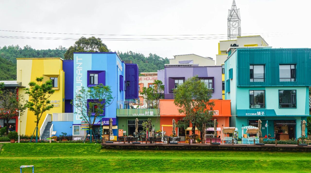 走进村子,由过去村里的土坯房改造而成的五颜六色建筑鳞次栉比,有游客接待中心、乡村民宿、餐厅等休闲场所,还有牛棚改造的酒吧等,为游客带来独一无二的乡村游娱乐体验。