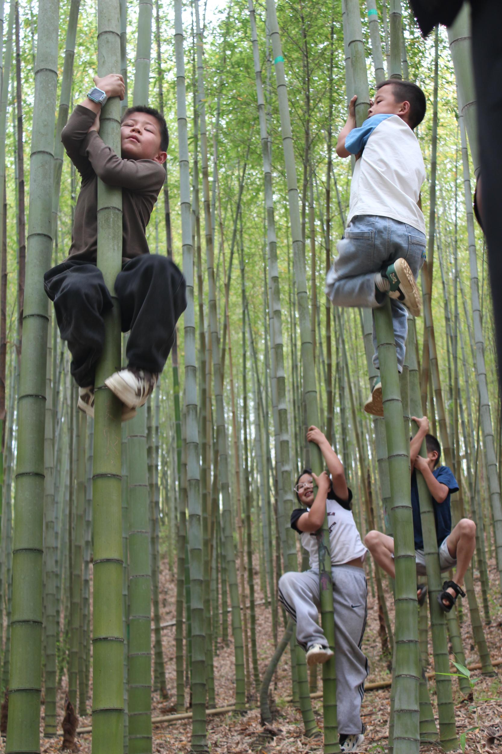 在峨山县玉竹峰海景区,游客除了赏万亩竹海,还能参加攀竹比赛。景区提前对比赛场地进行了专业规划,精选直经适中生长健壮的楠竹作为比赛用竹,比赛以人数分组,每组以单人攀爬至指定高度并拿到竹梢标志物为完成标准,以用时长短决出名次,根据不同名次设置了竹筒酒、竹工艺等精美奖品。