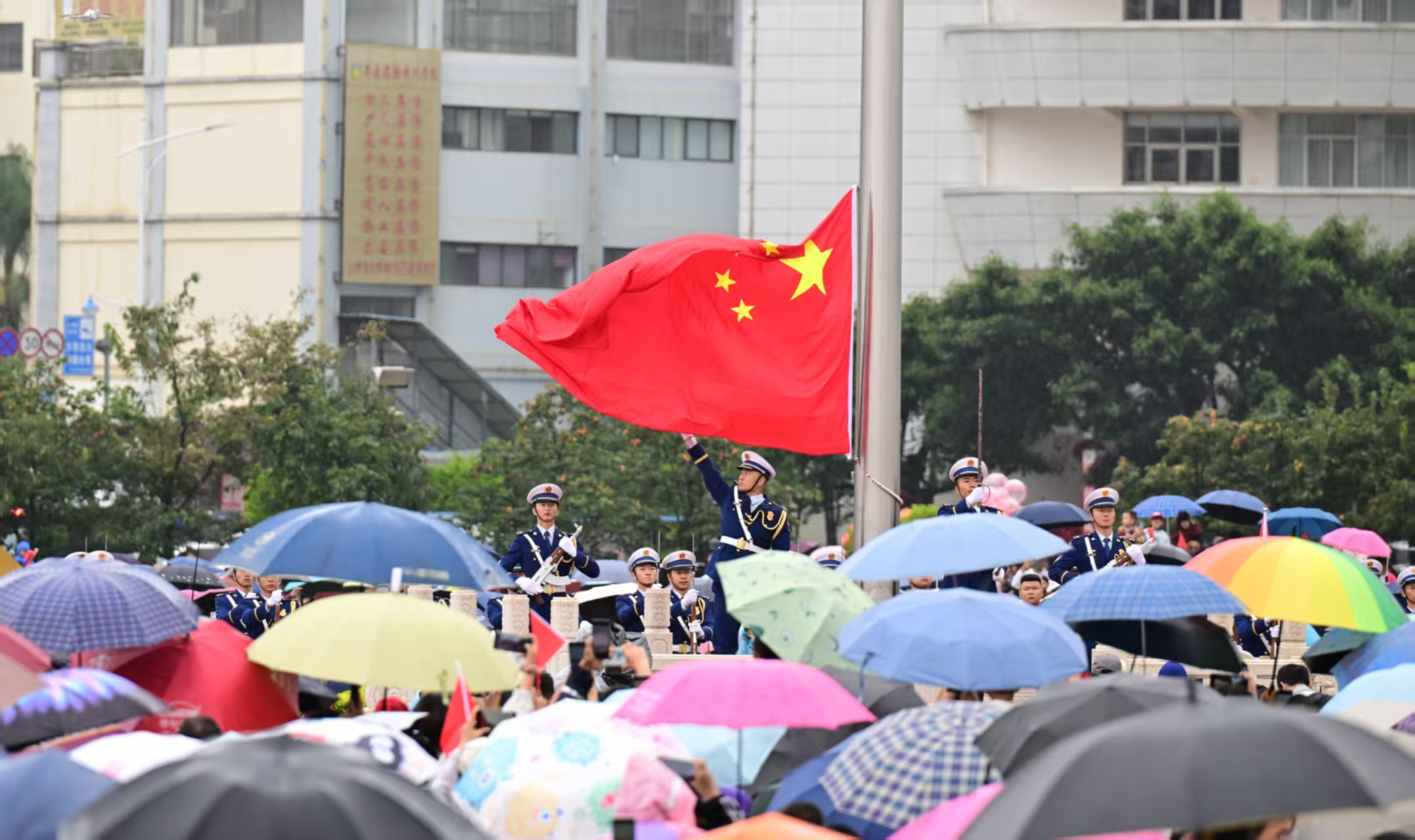 10月1日,举国欢庆。清晨濛濛细雨中,在聂耳故乡玉溪,这座用旋律镌刻爱国情怀、用乐章传递民族精神的城市,人们从四面八方赶来,共同参与玉溪市“同升国旗・同唱国歌”活动。