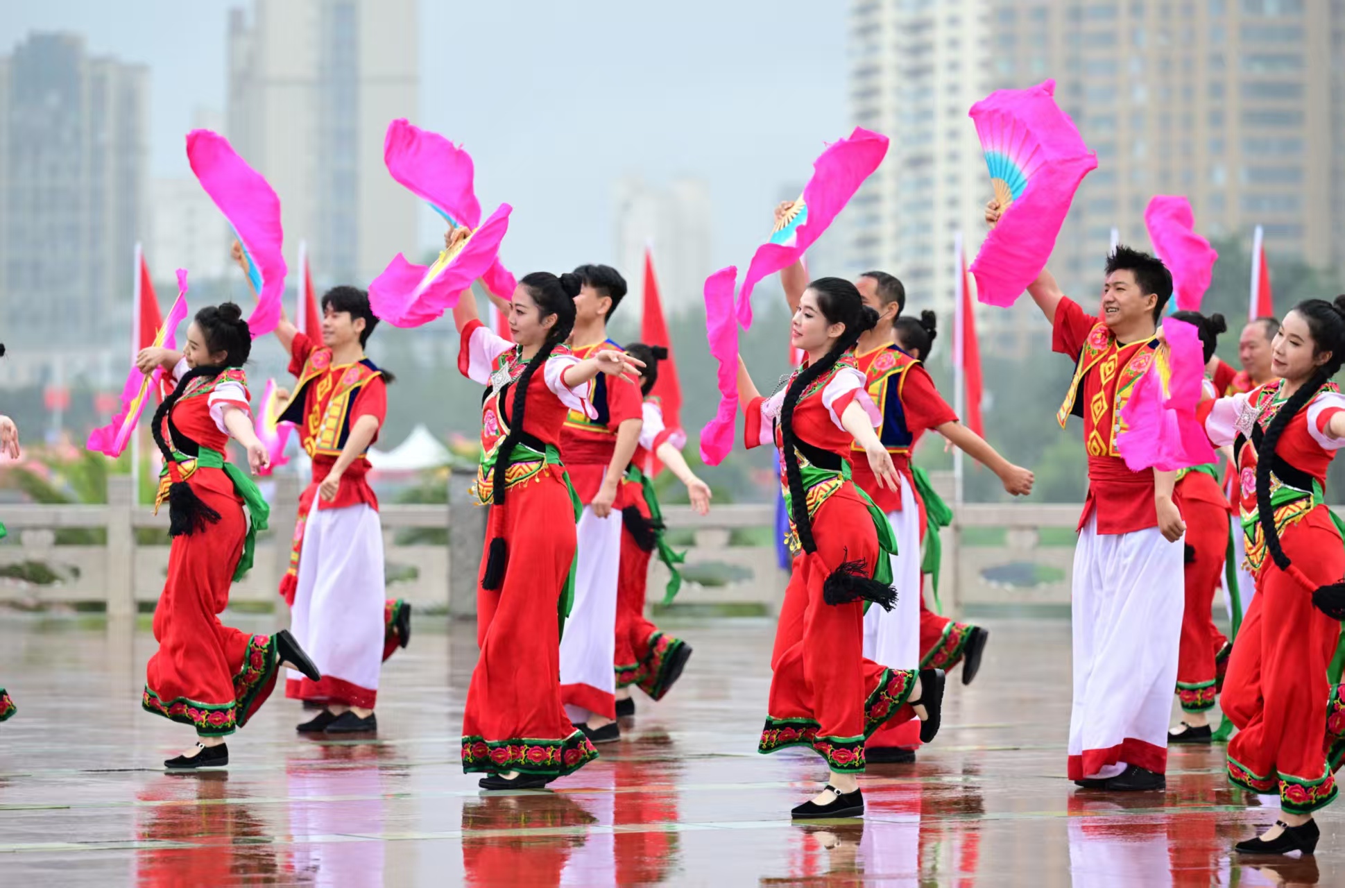 升旗仪式后,来自玉溪聂耳竹乐团、玉溪市花灯剧院的文艺工作者,以文艺表演传承爱国主义精神,在歌声中弘扬爱国情怀。