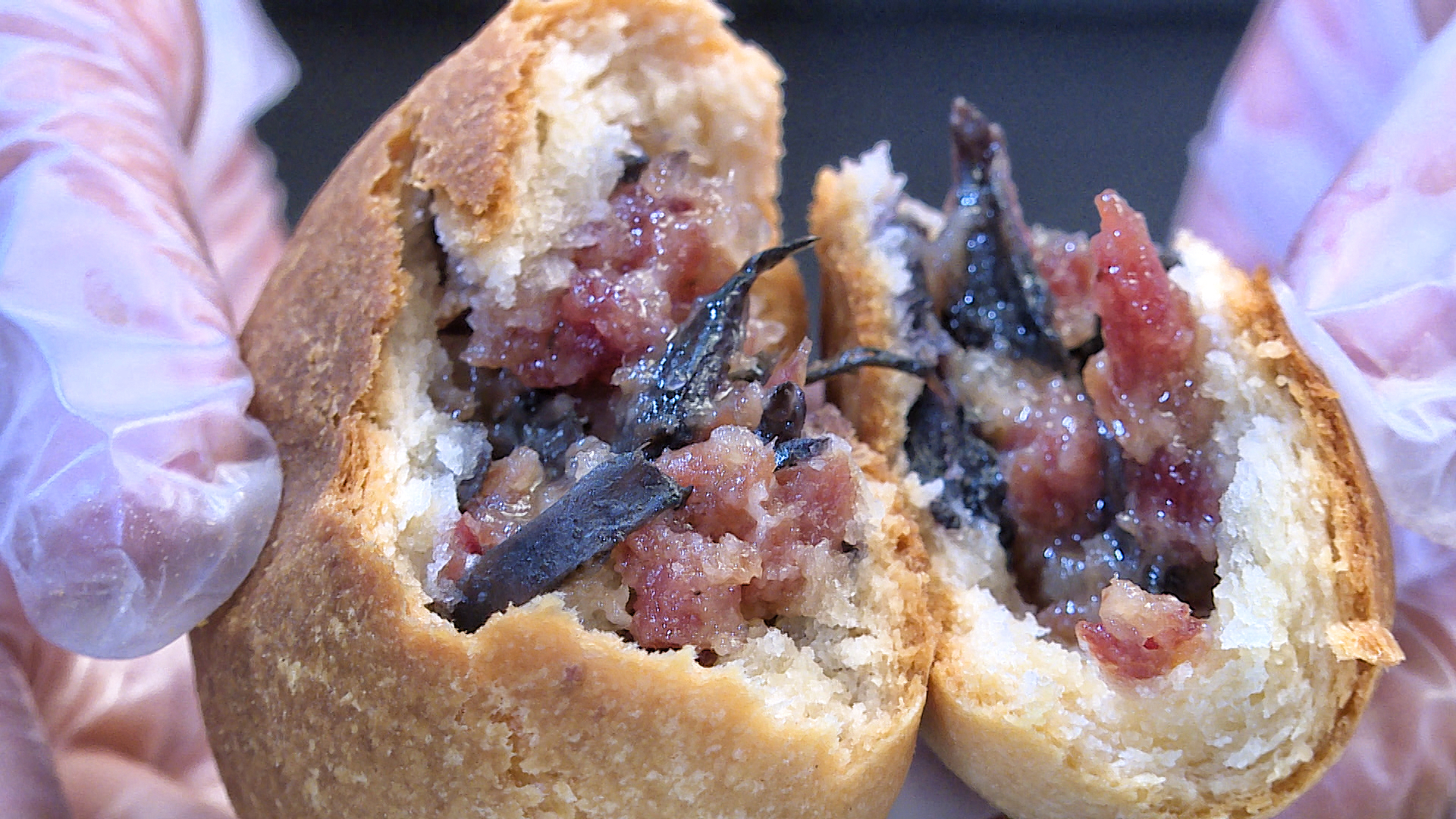 炒透的野生菌切碎后,与肥瘦相间的火腿、面粉、白糖等按比例混合,包入酥软饼皮,经高温烘烤后,饼皮层层起酥,菌香与肉香在烤箱中进一步交融升华。出炉时,金黄的月饼外皮泛着诱人光泽,未食先香,令人垂涎。