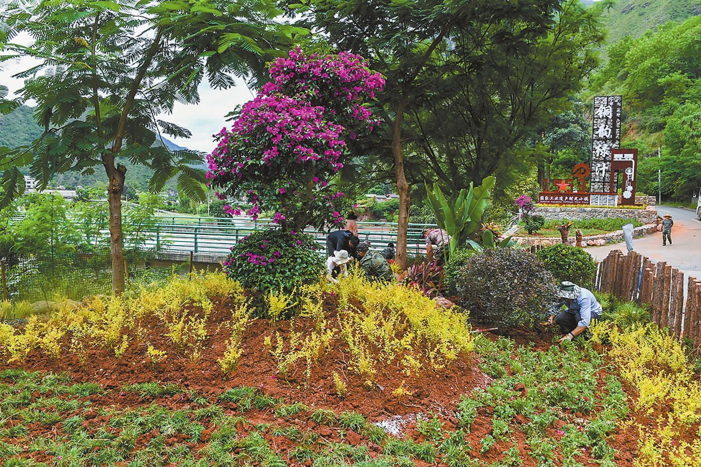 9月29日,易门县绿汁镇干部职工在绿汁大桥旁种植花草,进一步提升人居环境,扮靓国家级工业遗产旅游区。