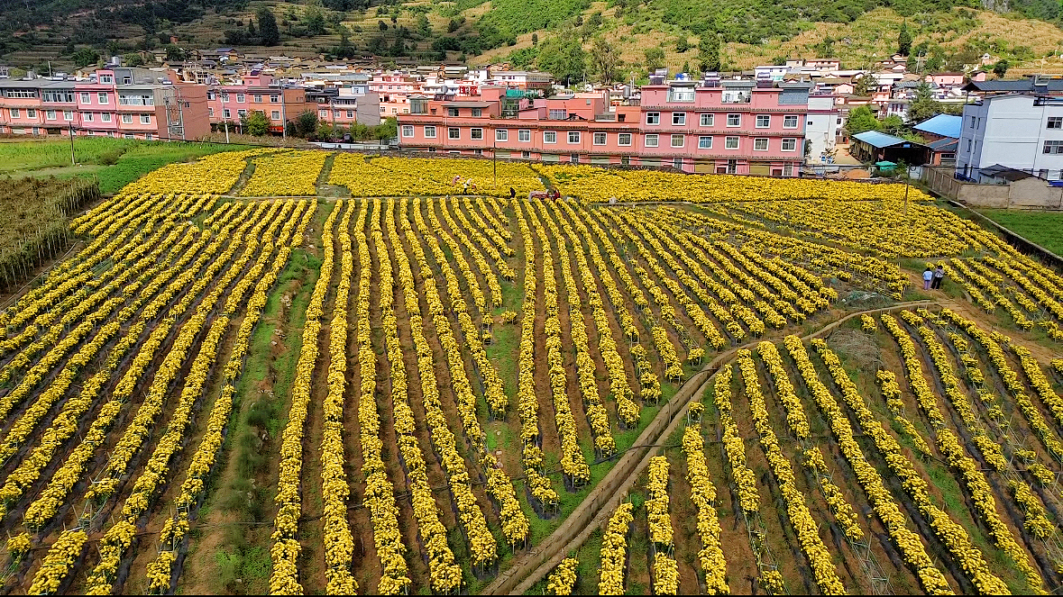 金秋十月,玉溪市易门县小街乡的田间地头洋溢着丰收的喜悦。27亩金丝皇菊竞相盛放,金黄的花朵在阳光下熠熠生辉,一垄垄花海连绵成片,铺就一条群众增收,集体经济壮大,乡村振兴的“黄金路”。