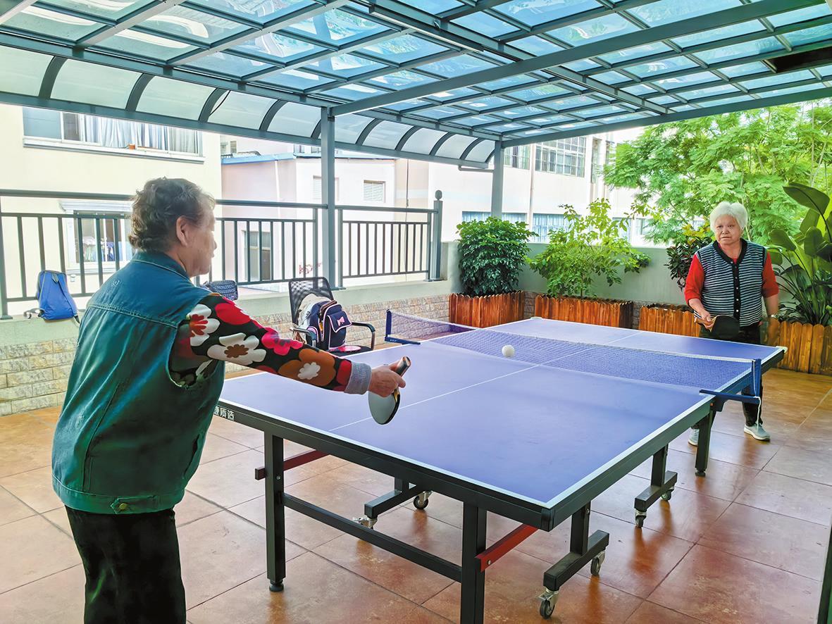 二楼健康养生课堂上,老人们聚精会神,不时举手提问;三楼乒乓球桌前,几位老人挥拍自如,身手利落。整栋楼从无障碍电梯、防滑地板到专用卫生间,每一处细节都体现着对老年人的关怀。“中心服务很贴心,随时都有饮用水,吃饭、如厕都很方便。”正在运动的王阿姨表示。
