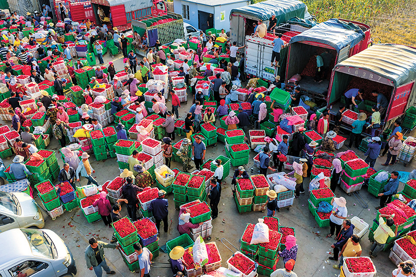 热闹的辣椒交易市场。