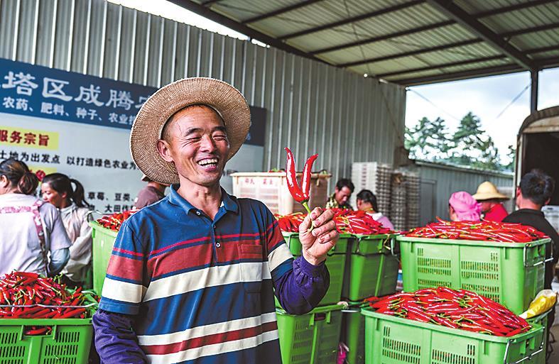 据一位来自江川的土地承租商介绍,今年雨水多,辣椒产量偏低,但价格最高时却能卖到十多元一公斤。辣椒收购结束,下一茬准备种植菜豌豆,一年两熟。