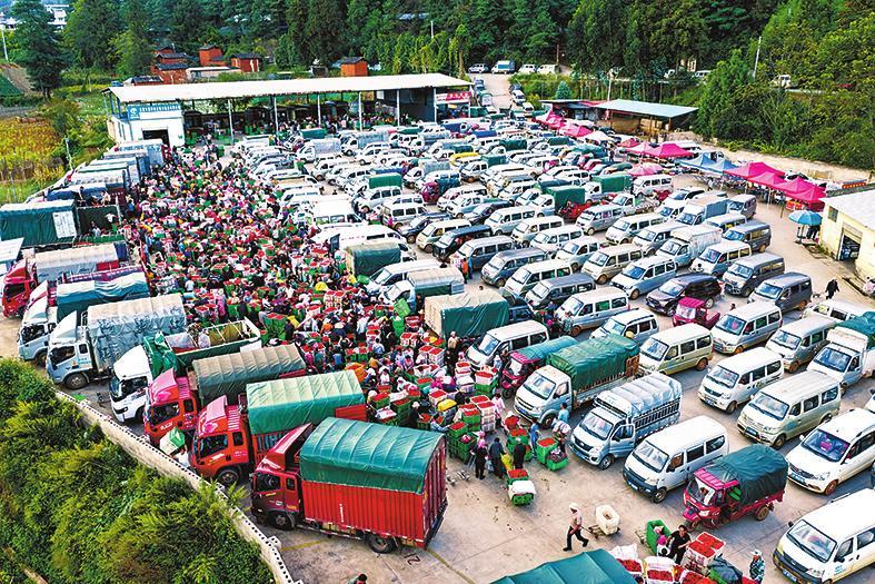 从10月初开始,红塔区春和街道黄草坝村的辣椒陆续进入成熟期,外地的收购商纷纷涌入,黄草坝村开始热闹起来。黄草坝村的农产品交易市场停满车辆,种子商、汽车销售商、烧烤摊、糕点摊等相继进入市场。这样热闹的场景一直持续到10月底辣椒收购结束。