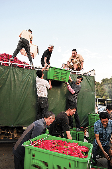 装运辣椒。