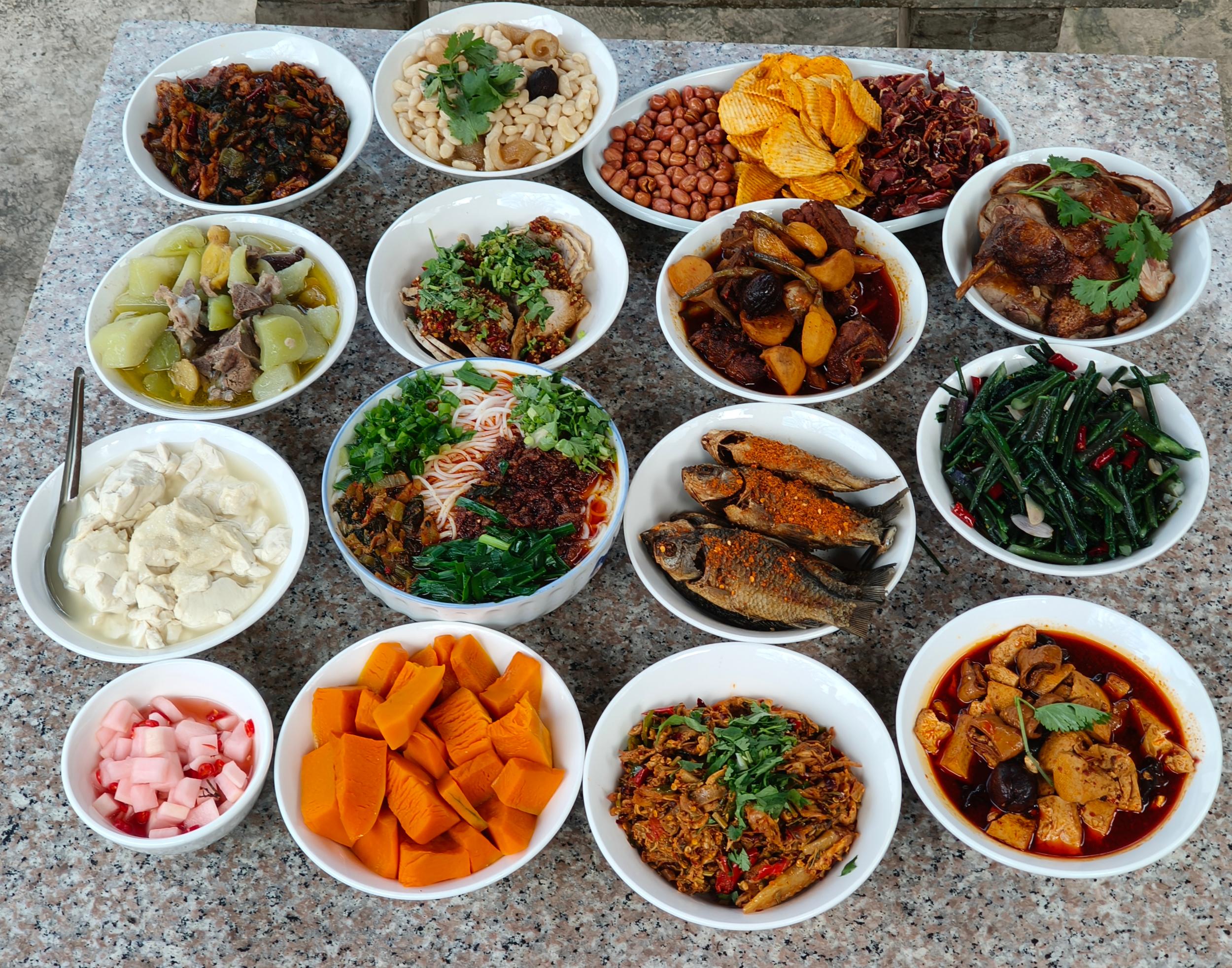 “稻花全席”以新收稻米为主角,配以稻田鱼、山林鸡等时鲜,十五道彝家风味诚意满满。游客与村民围坐共餐,雨打棚顶之声,与笑语杯盏相融,寒意被暖意驱散,丰收的喜悦洋溢。
