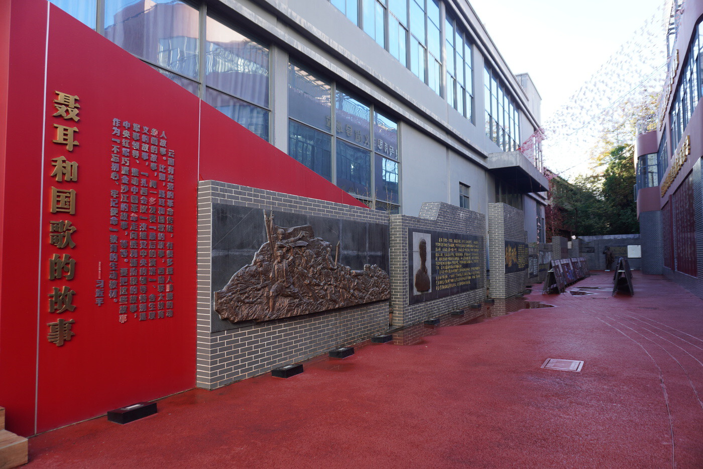在沉浸式的聂耳和国歌爱国主义教育基地内,涵盖照片、音像、著作、艺术品等在内的1000余件展陈为学生拨开了历史烟云,使其能直观感受聂耳创作时的意气风发;依托思政课程与专业教学的生动解读,让学生深切了解其追求上进、矢志创作的音乐才华;紫艺沉浸馆则通过VR技术,让参观者“穿越”历史时空,沉浸式感受《义勇军进行曲》诞生背后的烽火岁月。