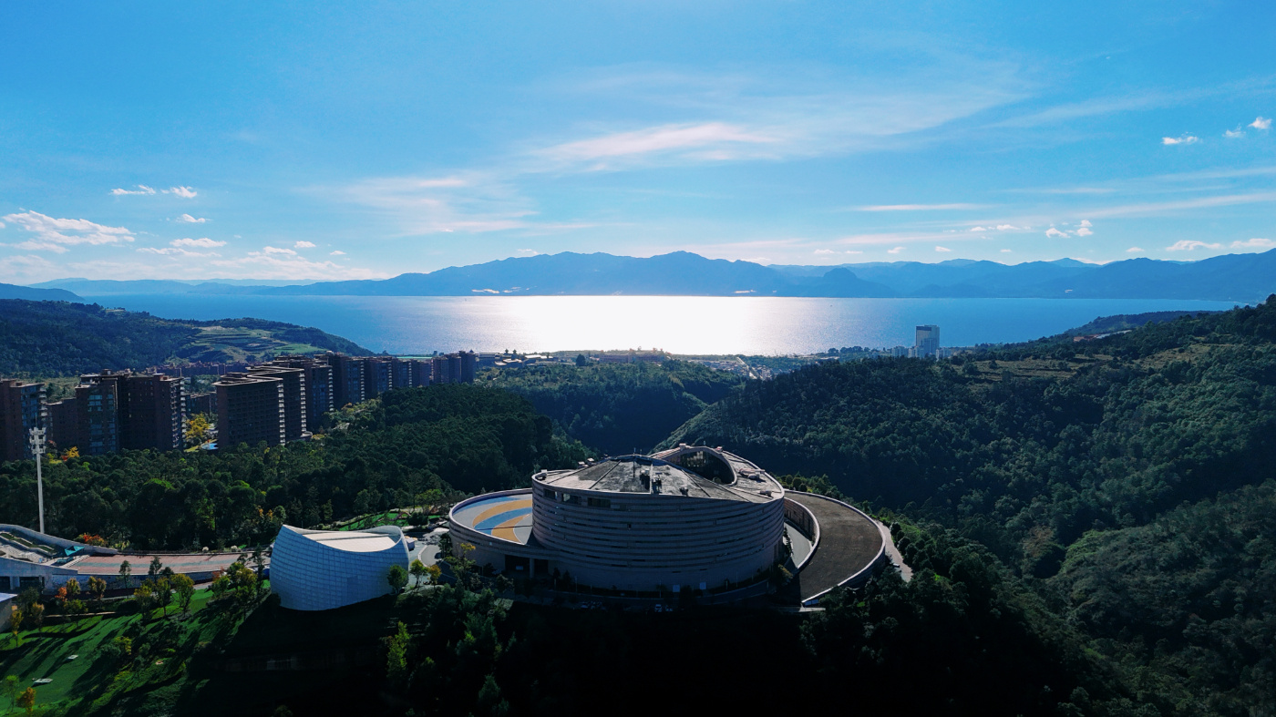 抚仙湖碧波荡漾,一座形似“生命摇篮”的建筑静卧在山水之间。晨光中,澄江化石地自然博物馆外墙如同层层叠叠的沉积岩,记录着时光的纹理。