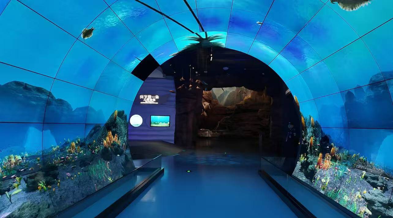 在“海底隧道”中,寒武纪时期的200多个物种“复活”了,体长近两米的奇虾从头顶游过,半透明的水母随“水流”浮动,昆明鱼灵巧穿梭其间;运用显微CT断层扫描等先进技术手段,给寒武纪节肢动物化石拍出了多张较为完整的CT片,把保存在石块表面和内部的信息一并提取出来,经过计算机处理得到接近完整的三维信息,将化石放大了展示给游客;引入XR沉浸式体验设备和4D、5D影院并投入使用,与中国科学院国家天文台合作的星空望远镜项目,实现抬头仰望天空,低头探寻深海······