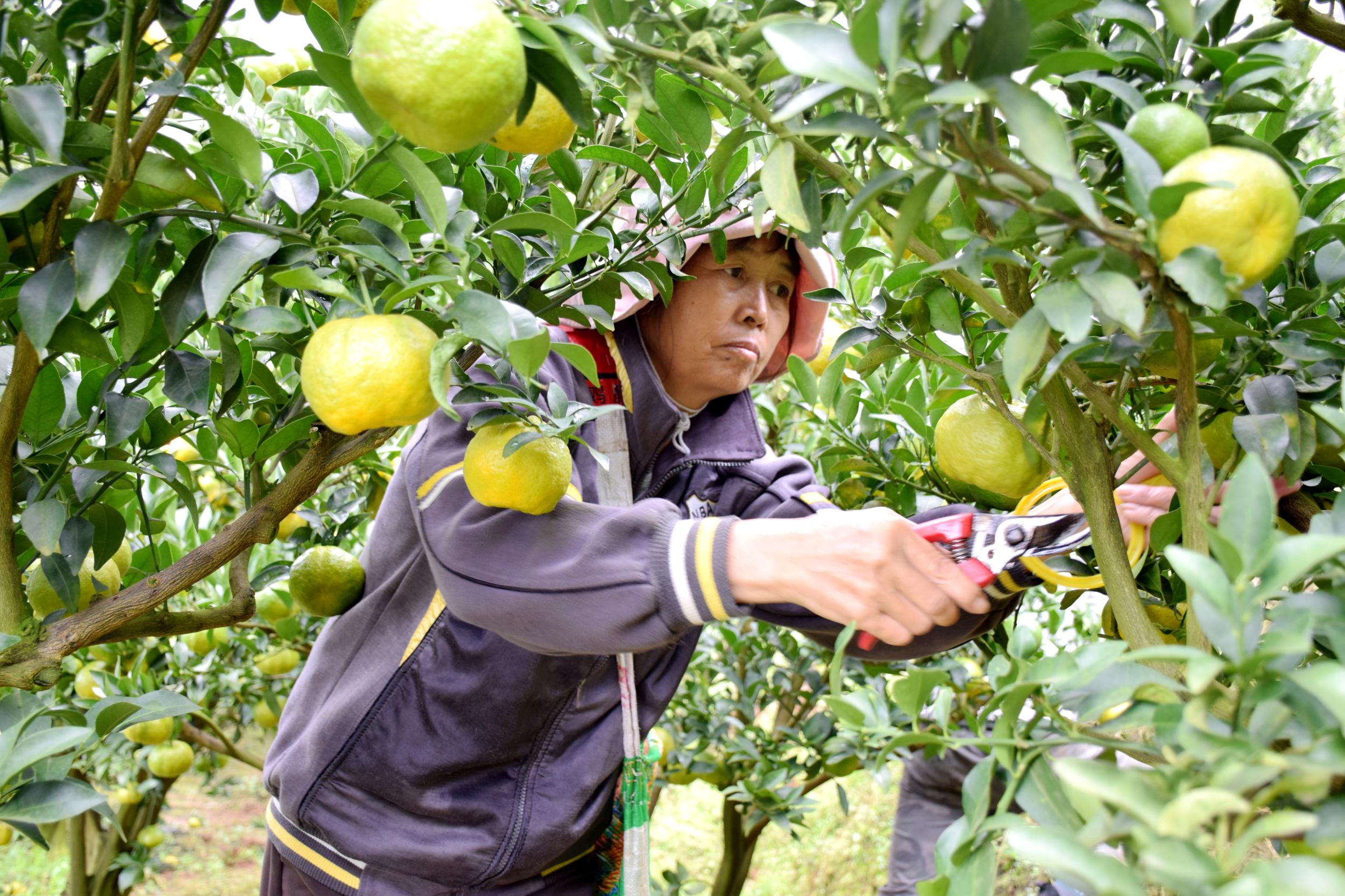 走进曼来镇新光村村委会的柑橘种植园,青黄的椪柑缀满枝头,果香四溢。果农韩云海穿梭林间,手持剪刀快速剪下成熟果实,小心翼翼放入竹筐,随后集中搬运至地头装车,争分夺秒抢收外运,田间地头一派热火朝天的丰收景象。