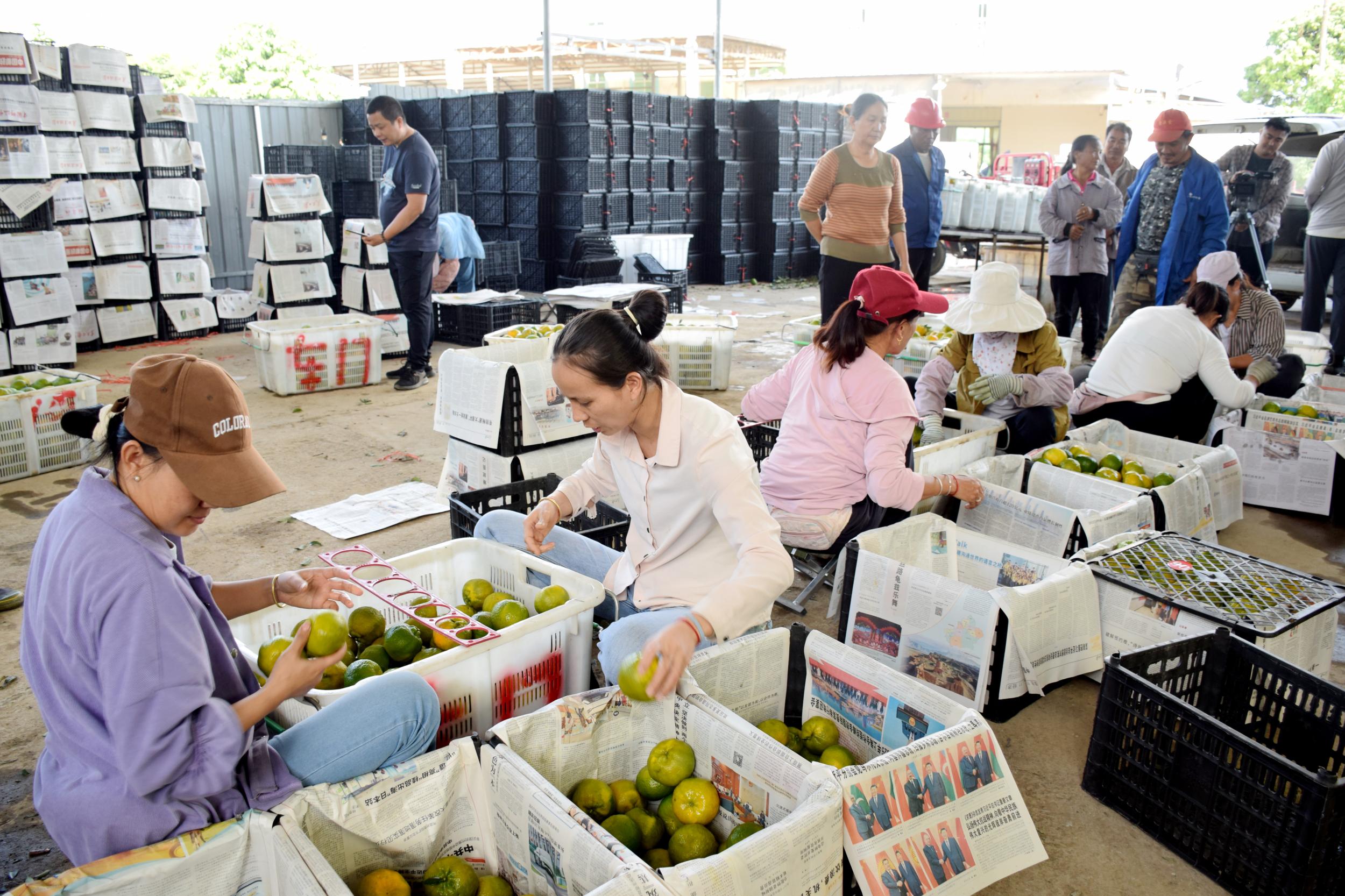 走进新光村委会曼老村民小组的柑橘收购点,眼前一派繁忙景象,果农的三轮车排成长龙,工人们正忙着卸货、分拣,柑橘经过保鲜浸泡、残枝修剪和大小分拣后,迅速被打包装箱、装车待发。来自福建的收购商辜明权正仔细核对收购清单,他告诉记者,他们一个月前就已来到曼来镇收果,这里的柑橘因上市早、口感甜,在北方市场格外抢手。