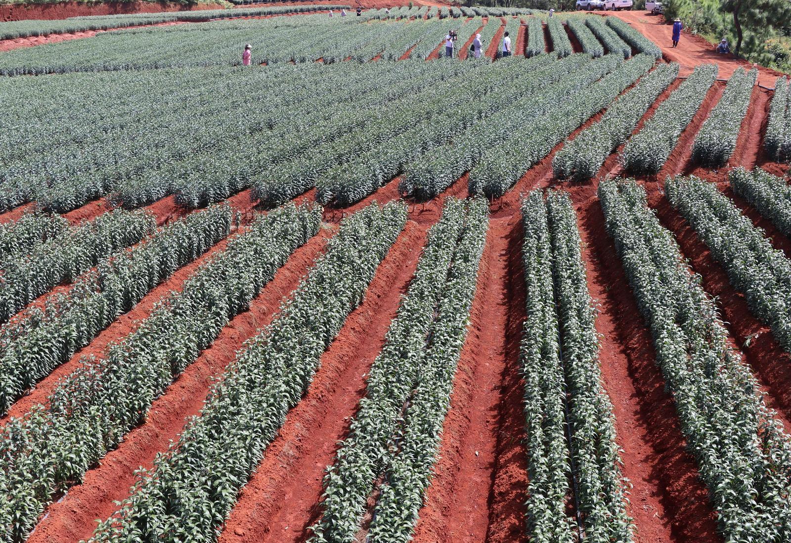 走进位于平甸乡者甸村的云南新平百鹤塘园艺有限公司种植基地,连片的百合植株郁郁葱葱。工人们动作娴熟,锄头挥动间,一颗颗形如莲花、洁白如玉的百合破土而出。