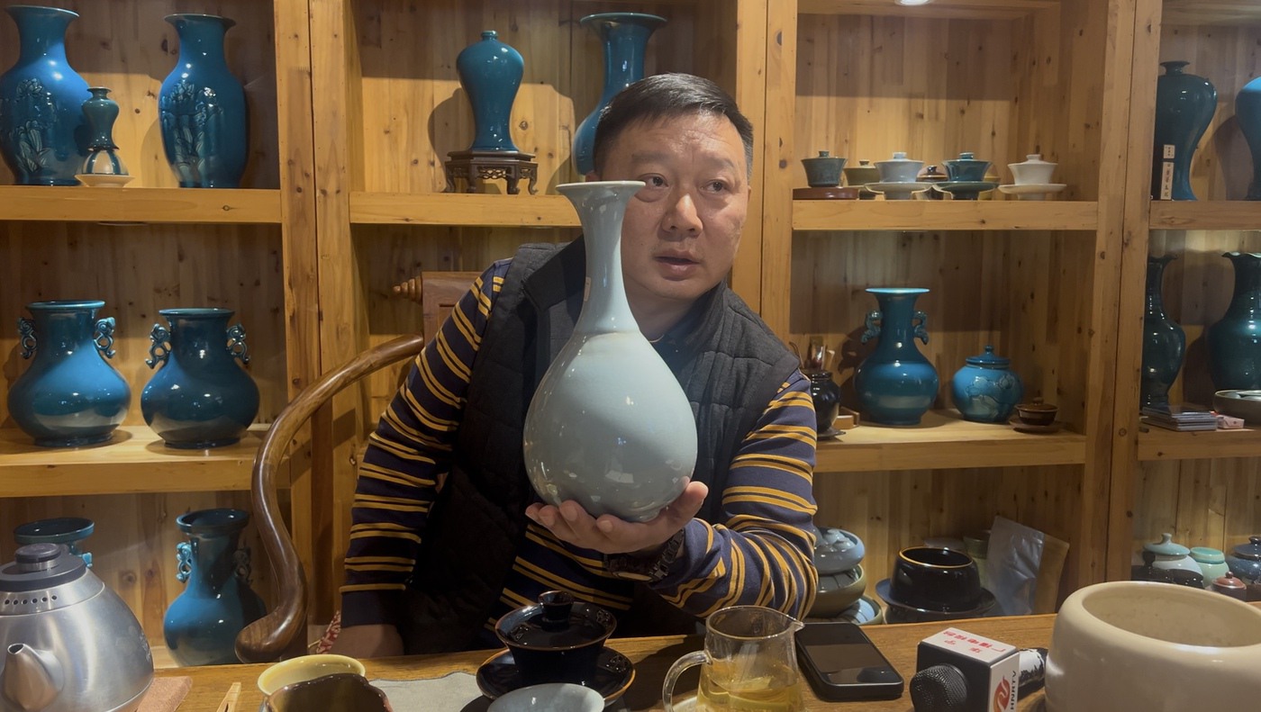 晚上8点,在“华宁陶”直播间里,负责人普敏小心地转动着一个茶杯,正向手机屏幕另一端的观众展示着釉色流转的美妙。