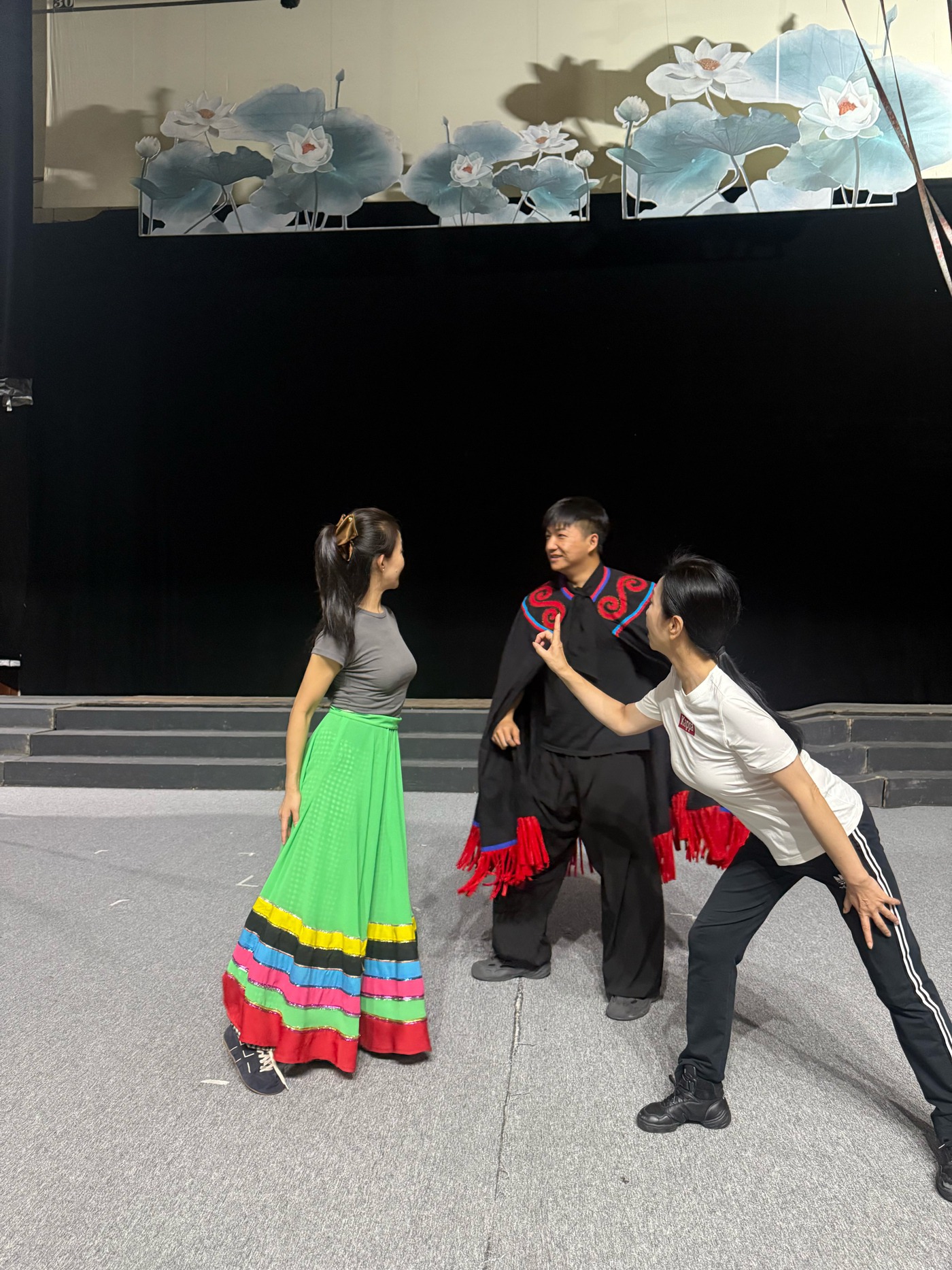 2025年复排《卓梅与阿罗》,杨丽琼指导青年演员排练“玉溪的文化土壤和人民群众的喜爱,是玉溪新灯得以活跃至今的重要因素。”杨丽琼介绍,花灯是田埂艺术,魅力之处在于与广大群众有着紧密的联系和表达,唱出了生活。