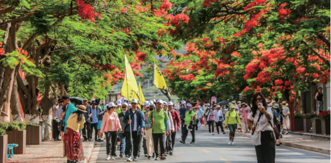 依托地域文化与自然资源,将“强体魄”“促团结”与文旅体验深度融合,打造各族群众共享的健康生活场景。以“72拐108弯”、国家工业遗产易门铜矿为IP,举办机车巡游、徒步穿越凤凰花海等活动,吸引周边各族游客800余名徒步爱好者参加,感受自然与人文交融的诗意画卷,体验健康徒步之旅;火把节期间,十街乡、浦贝乡举办拔河、钓鱼等民俗体育赛事,各族群众在载歌载舞中同台竞技;龙泉街道在活动中融入划船竞技,让各族群众在感受民俗风情、欣赏自然风光中增进情感共鸣。全年此类活动吸引超12万人次各族游客参与,实现“运动+文旅+民族团结”双向赋能,让各民族在深度交融中增强文化认同。