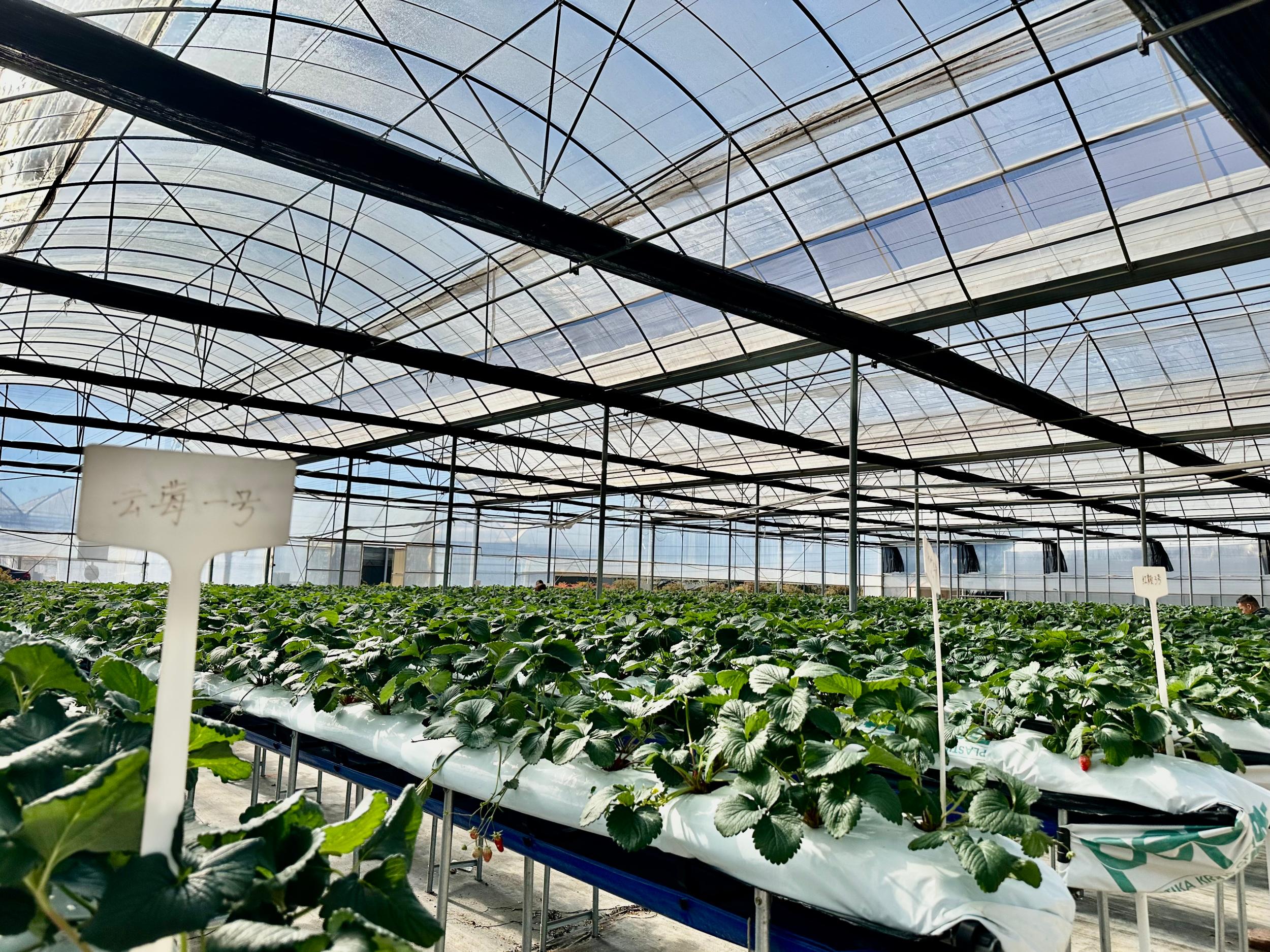 产业崛起的背后,是科技创新的强力支撑。走进云南省农科院九溪基地的新品种展示棚,67种国内外草莓品种依次排开,高架栽培的植株错落有致,白色的小花与鲜红的果实掩映在绿叶间。