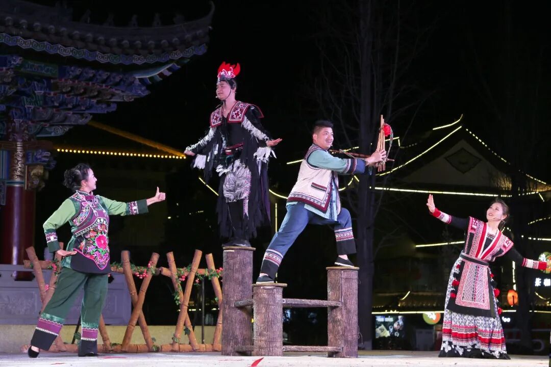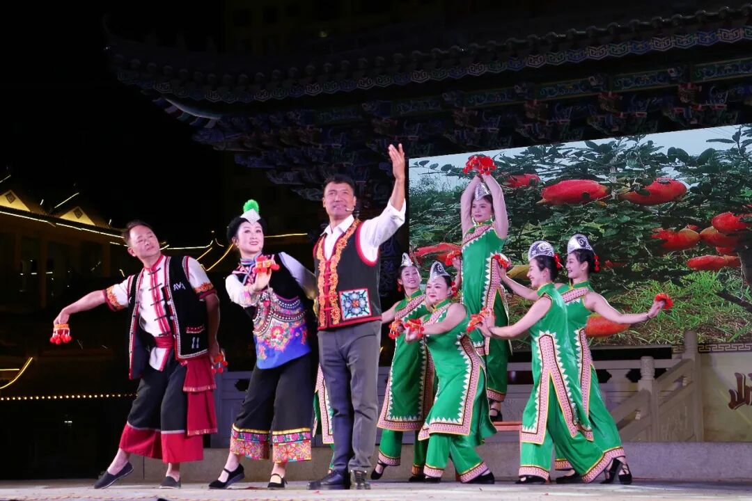 伴随着欢快的旋律,舞蹈《赞易门》率先登场,瞬间点燃现场氛围。随后,婉转悠扬的歌曲《净土》,充满生活气息的花灯小戏《石榴红了》《高脚鸡》等节目依次亮相。