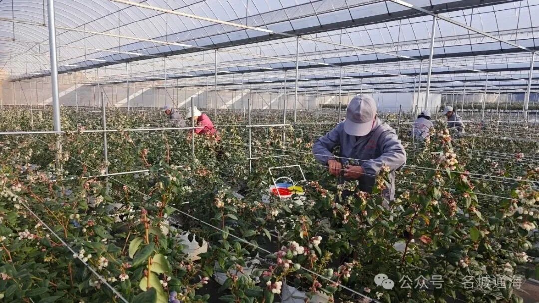 走进六街村的现代科技农业示范园,50余亩蓝莓大棚内绿意盎然,沉甸甸的蓝莓果实缀满枝头,五六个工人正忙着娴熟地挑选、采摘成熟果实;相邻的番茄大棚里,清甜2号小番茄挂满藤蔓,色泽鲜亮、果香浓郁,一派丰收的景象。