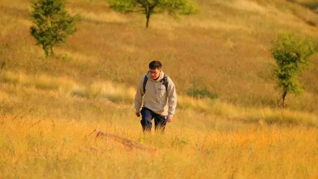 这里没有密林的遮蔽,只有风掠过草尖的沙沙声,与偶尔响起的鸟鸣相和,让人心境也随之舒展、宁静。若是黄昏时分前来,夕阳为草木镶上金边,远处山峦如黛,光影层次分明,随手一拍,皆是电影感十足的画面。