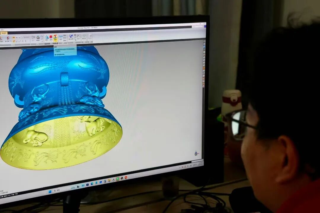 “3D设计是整个铜器制作行业最难攻坚的环节。”杨宵坦言。为期三个月的培训中,这对年轻夫妻凭借大学时期扎实的景观设计基础,系统掌握了3D软件功能。“以前要请人设计,现在我们已经能独立完成建模、导模、修模全流程。”
