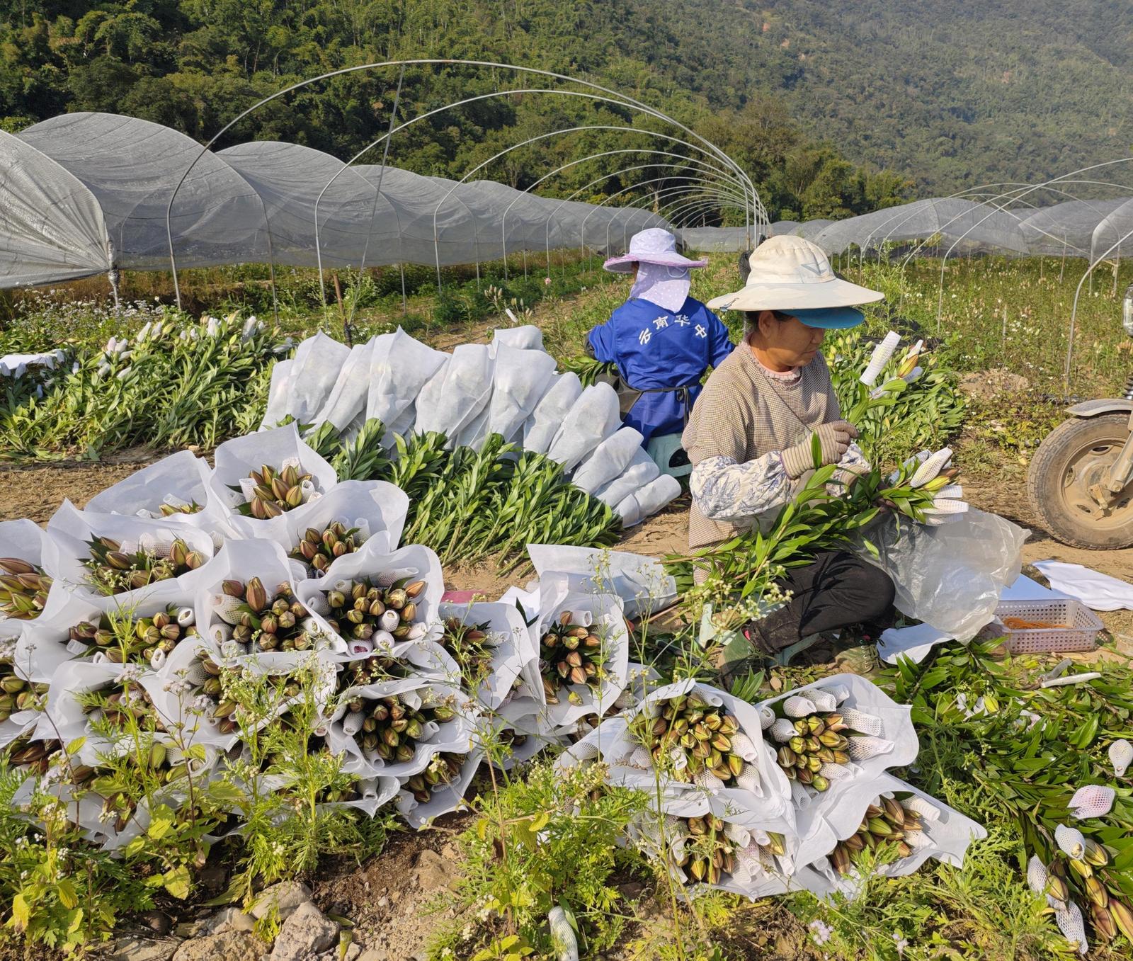 近日,玉溪市新平傣族彝族自治县水塘镇路南村的千亩百合迎来采收季。一支支鲜切花经过分拣、包装,即将发往昆明斗南花卉市场。当地以土地流转为基础,结合“稻花轮作”特色种植模式,让小小的百合花铺就一条增收致富之路。