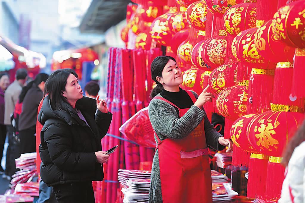 近日,在玉溪彩虹批发市场,市民正在选购春联、灯笼等年货。春节临近,全市各大批发市场、商超迎来年货采购高峰,人潮涌动间,处处洋溢着喜庆祥和的节日氛围,大街小巷年味满满。(李冉)