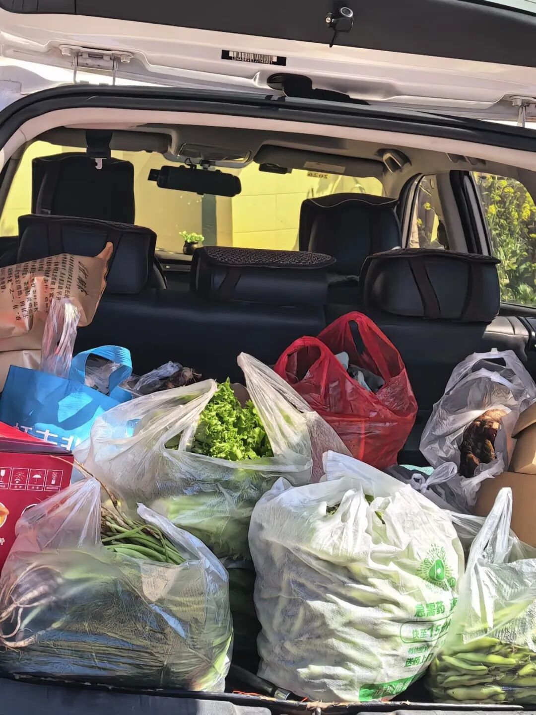家人把后备箱、行李箱