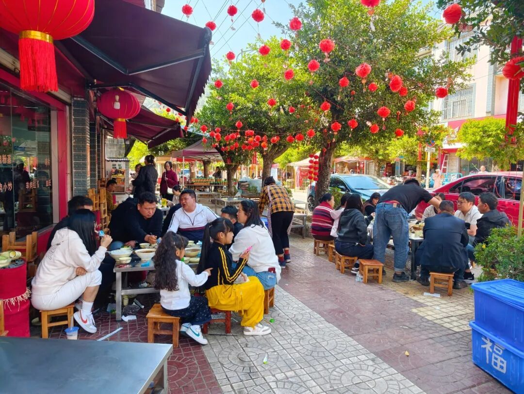 慕名而来的游客挤满了街巷,来自昆明、玉溪、楚雄乃至红河的食客络绎不绝,各家商户忙得热火朝天。