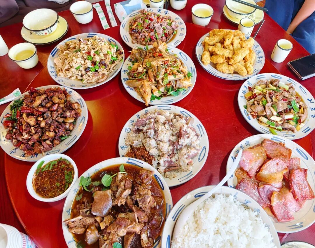 浦贝羊肉之所以圈粉无数,秘诀就藏在独具特色的羊全席里。在众多食客的餐桌上,几道经典菜品几乎是每桌必点:粉蒸羊肉,带皮羊肉精心腌制,裹上细腻米面蒸制,软糯入味、肥而不腻;羊肉小炒,鲜辣滑嫩、香气十足,堪称下饭“绝配”;凉拌羊蹄,筋道爽口、麻辣鲜香,是佐餐小酌的佳品;还有红烧羊排、清汤羊杂、油炸羊胸叉等菜品,或浓郁醇厚或清爽鲜美,每一口都是地道风味,征服着南北食客的味蕾。