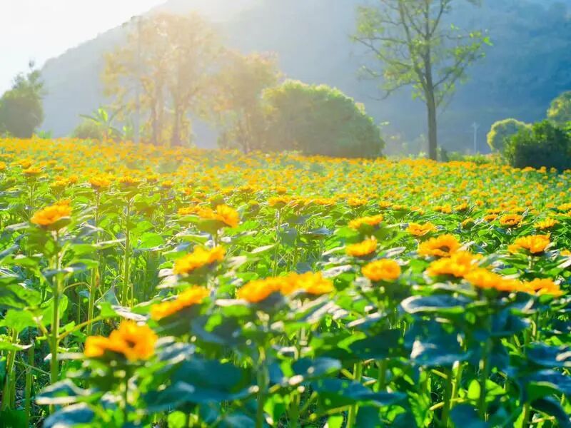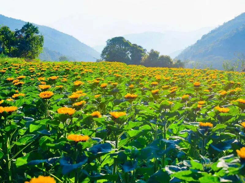 春日暖阳里,玉溪市新平彝族傣族自治县漠沙镇峨德村落莫小组的一片向日葵花海竞相绽放,连片金黄随风摇曳,与青山、田园相映成趣,绘就一幅生机盎然的乡村画卷。