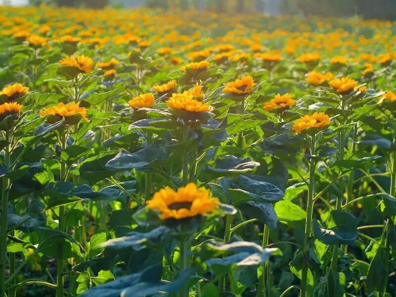 一朵朵向日葵昂首向阳,花姿明艳,吸引众多游客前来踏青赏花、拍照打卡,定格美好瞬间。
