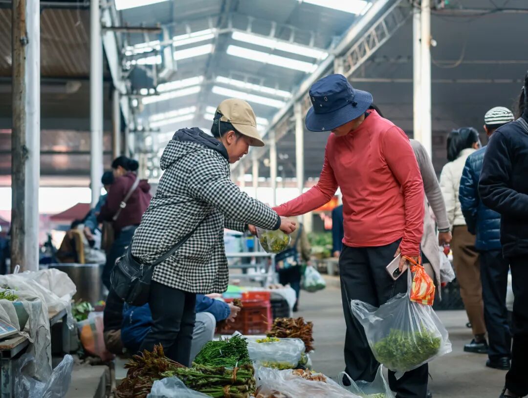 恰逢赶集日,走进西门农贸市场,仿佛跌入一片“春日花花世界”。金雀花、甜菜、臭菜、马桑花、苦刺花……数十种春日限定的野菜野花携山野清香亮相,成为集市里最亮眼的“春色”。摊位前,市民们或驻足细选,或询价购买,此起彼伏的谈笑声汇聚成浓郁的市井烟火气。