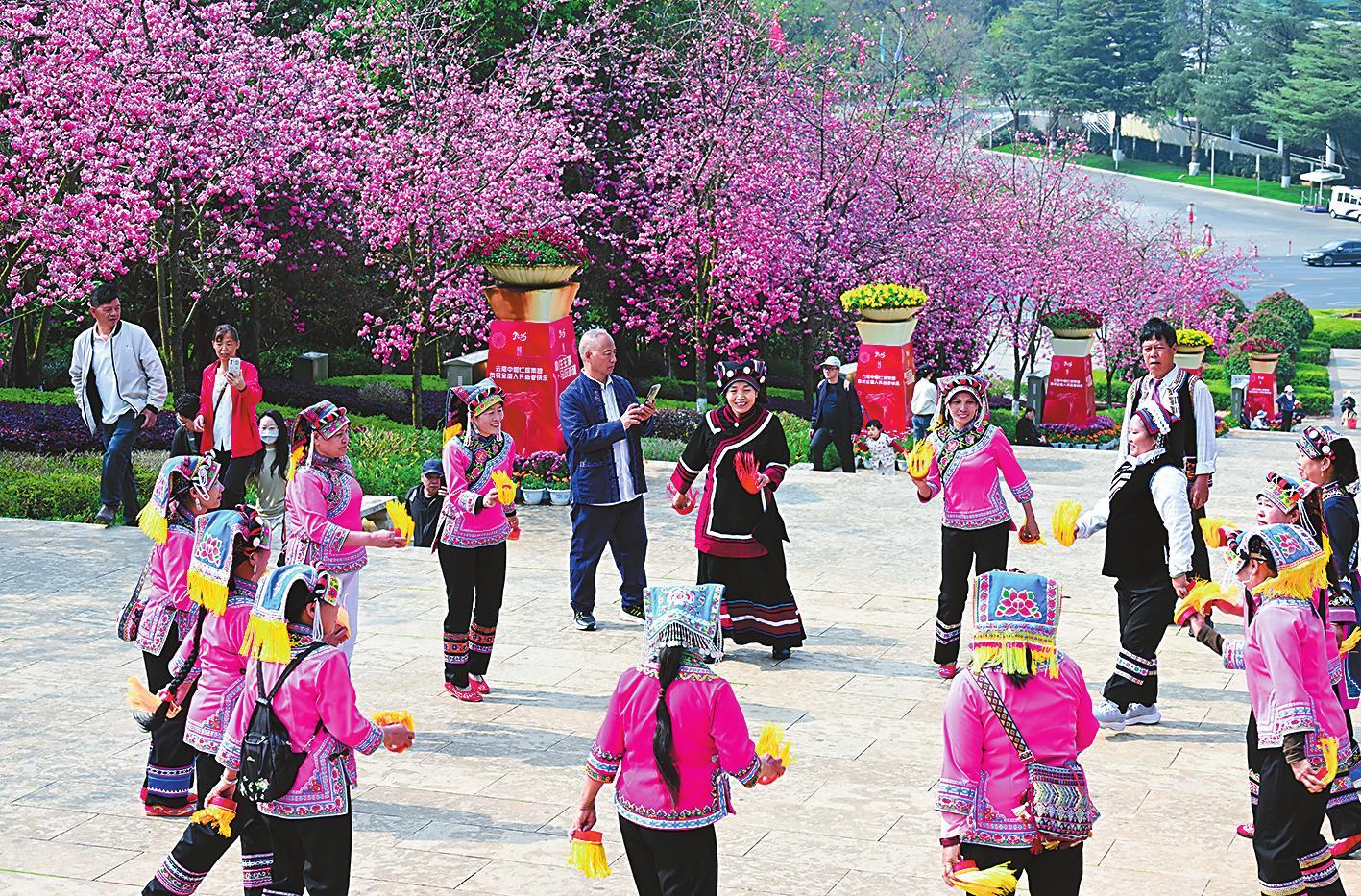 3月7日,红塔山公园的樱花竞相绽放,粉黛满枝,春意盎然,吸引了众多游客纷至沓来,观花赏景、拍照打卡,尽享春日美好时光。作为玉溪中心城区热门打卡地,红塔山公园已成为市民踏春赏景、感受自然之美的理想之地。(曾永洪)