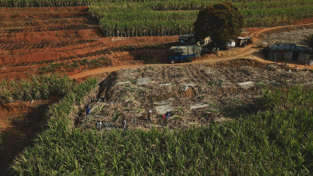 采收现场,田间地头的蔗农们抢抓晴好农时,分工协作、默契配合,收割、捆扎、装车,一条流畅的“流水线”在蔗林间快速运转。大家各司其职,挥汗如雨,脸上却难掩丰收的喜悦。采收完毕的新鲜甘蔗随即装车运往糖厂,开启榨糖加工流程。