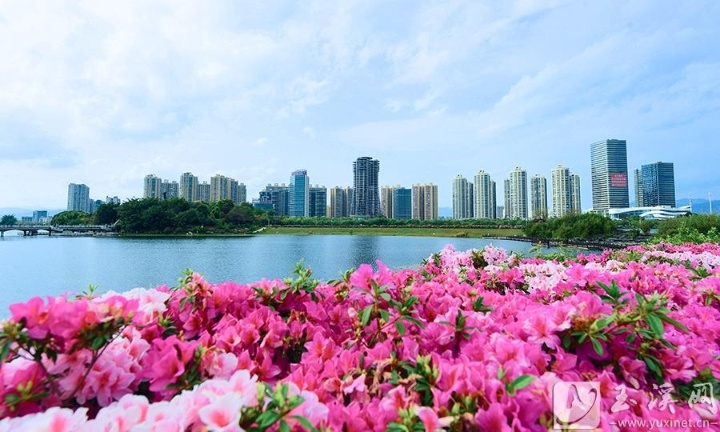 近日,玉溪聂耳广场杜鹃竞相绽放,春日暖阳下,粉紫繁花与清澈的玉湖湖水相映成趣,为春日玉溪增添了一抹灵动色彩。