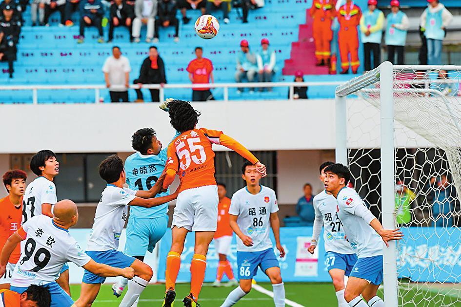 滇超赛场,玉溪队和昭通队激烈拼抢。本报记者 李冉 摄