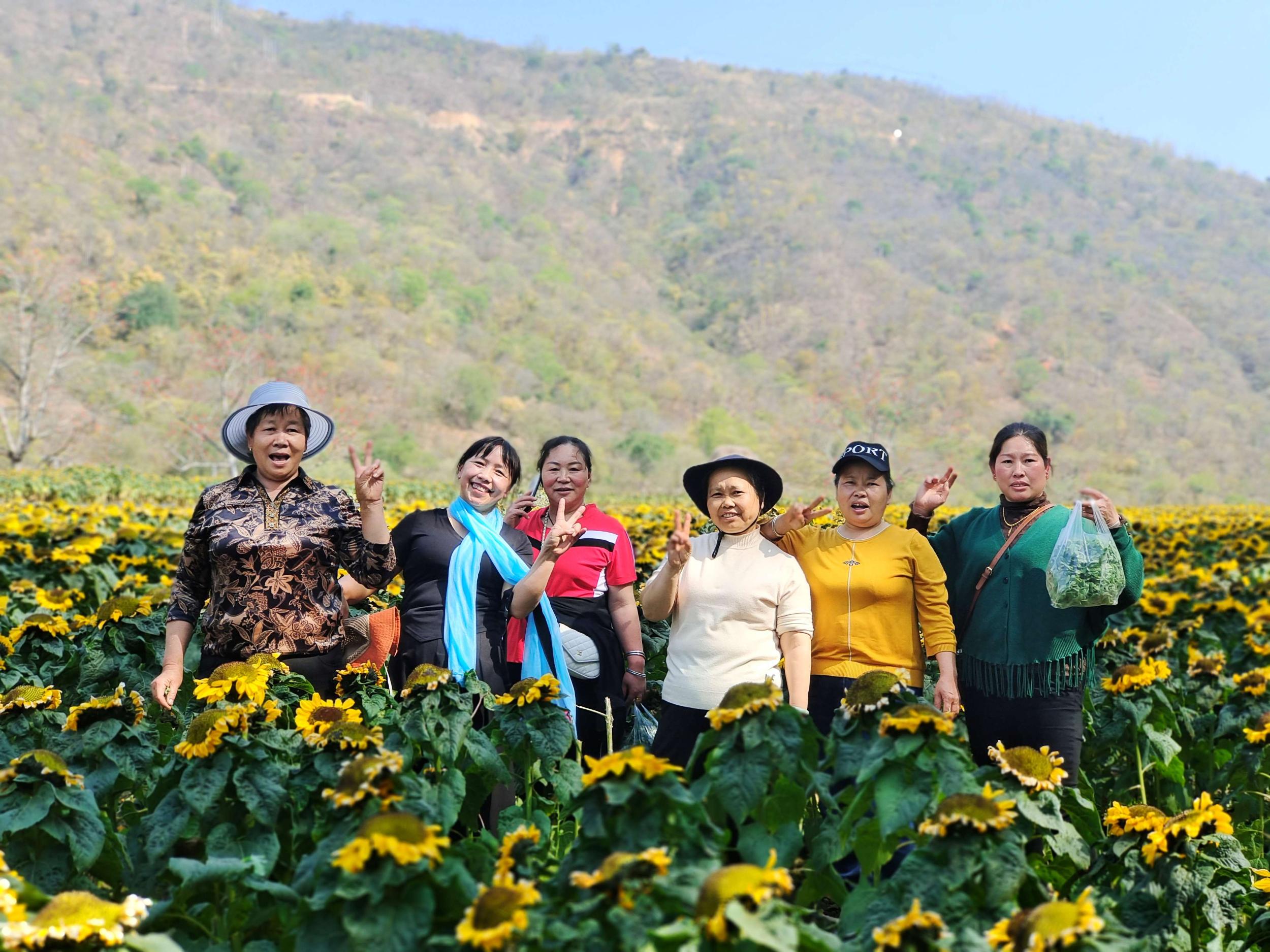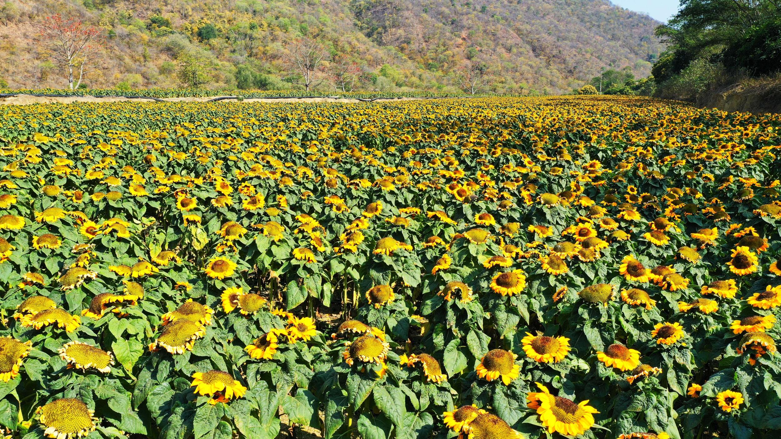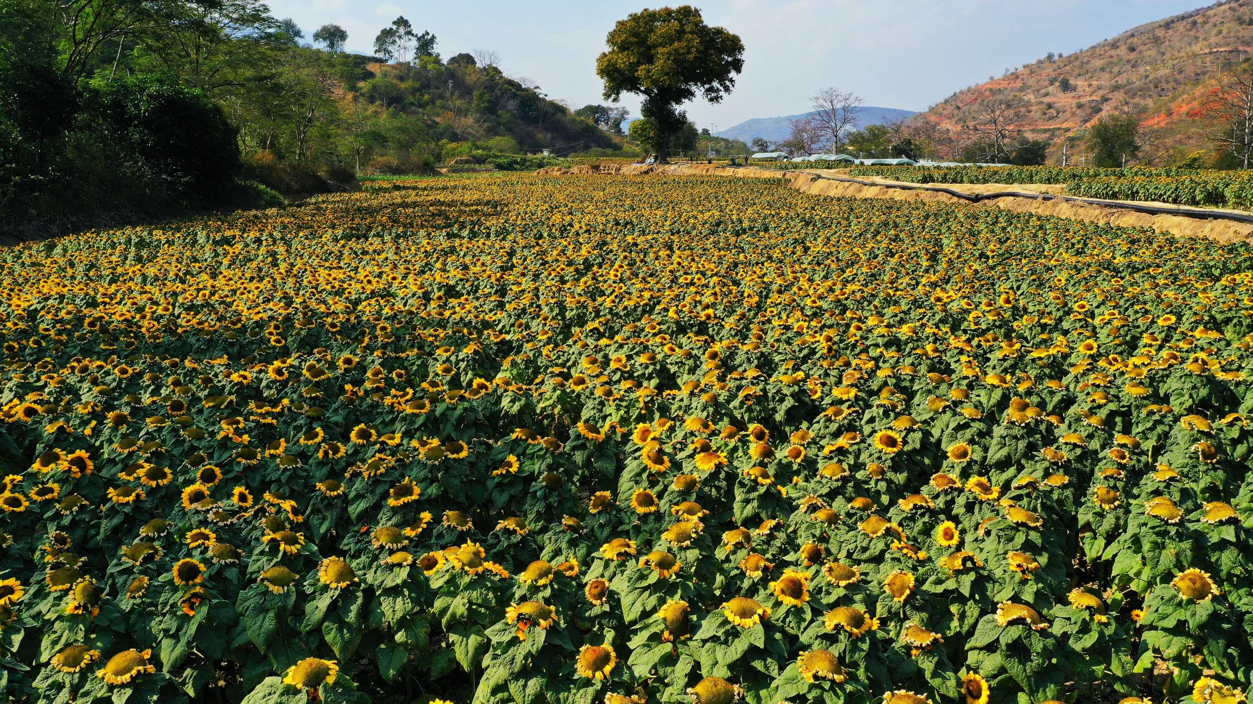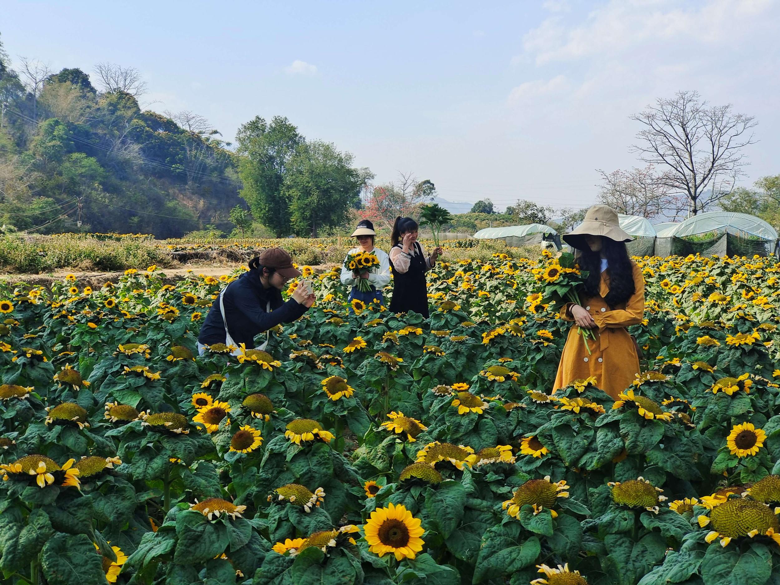 近段时间,新平县戛洒镇南蚌社区的向日葵基地里,连片的向日葵花开“成海”,吸引了众多市民、游客前往拍照、游玩。