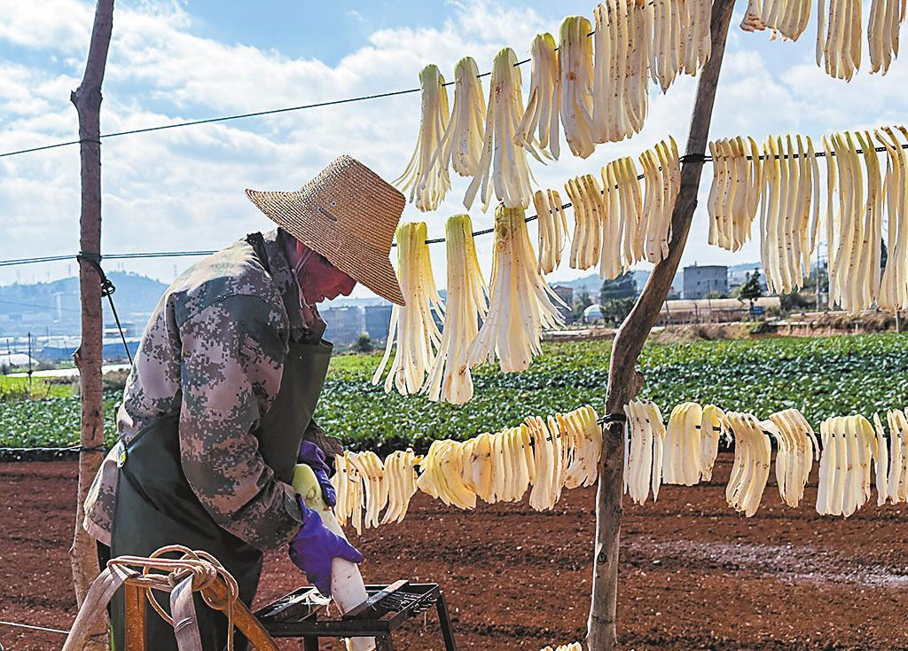 冬日暖阳洒满田野,江川区雄关乡迎来了萝卜采收季。连日来,萝卜种植户们忙着采收、加工、晾晒萝卜条。