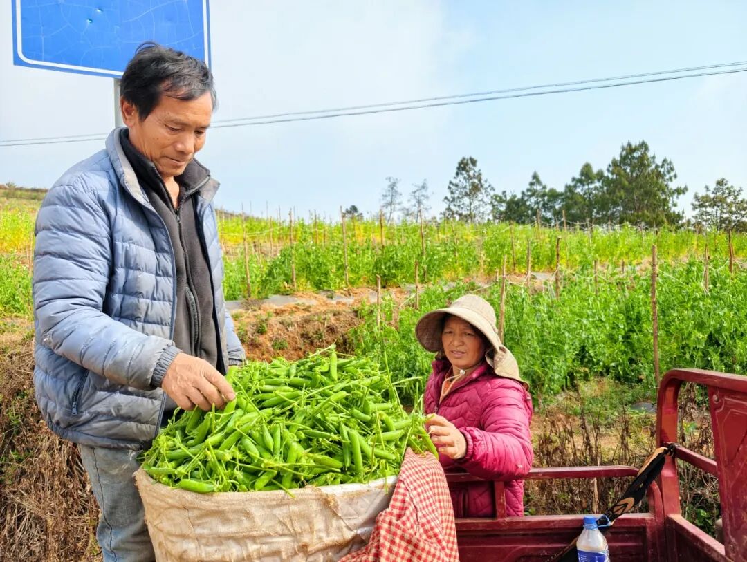 水塘村委会副主任普艳红介绍,从2月底开始,村“两委”、驻村工作队及巡山人员就实行轮流排班值守,全力保障豌豆交易期间交通顺畅。随着采收量持续增加、收购价格稳步上涨,农户的收益也越来越有保障。