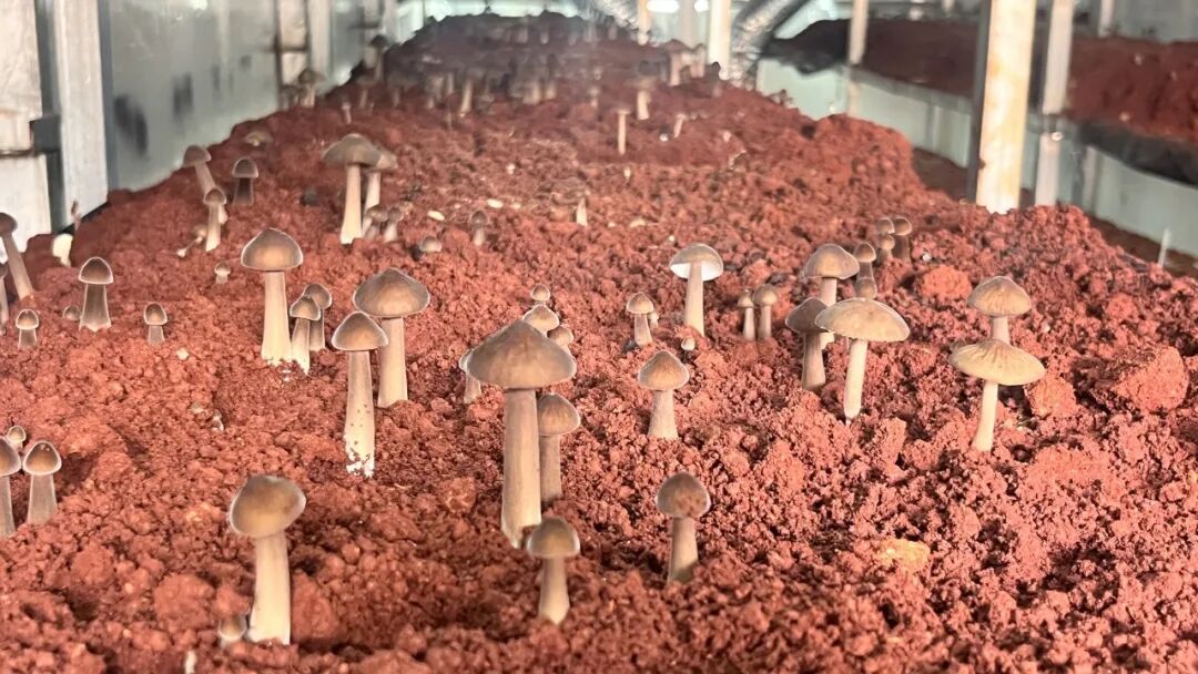 走进杨保庄村,昔日闲置的电烤烟房变身整洁规范的小型“菌类工厂”。棚内,鸡枞菌簇拥着从红土中冒出,菌盖饱满、纹路清晰,长势喜人。